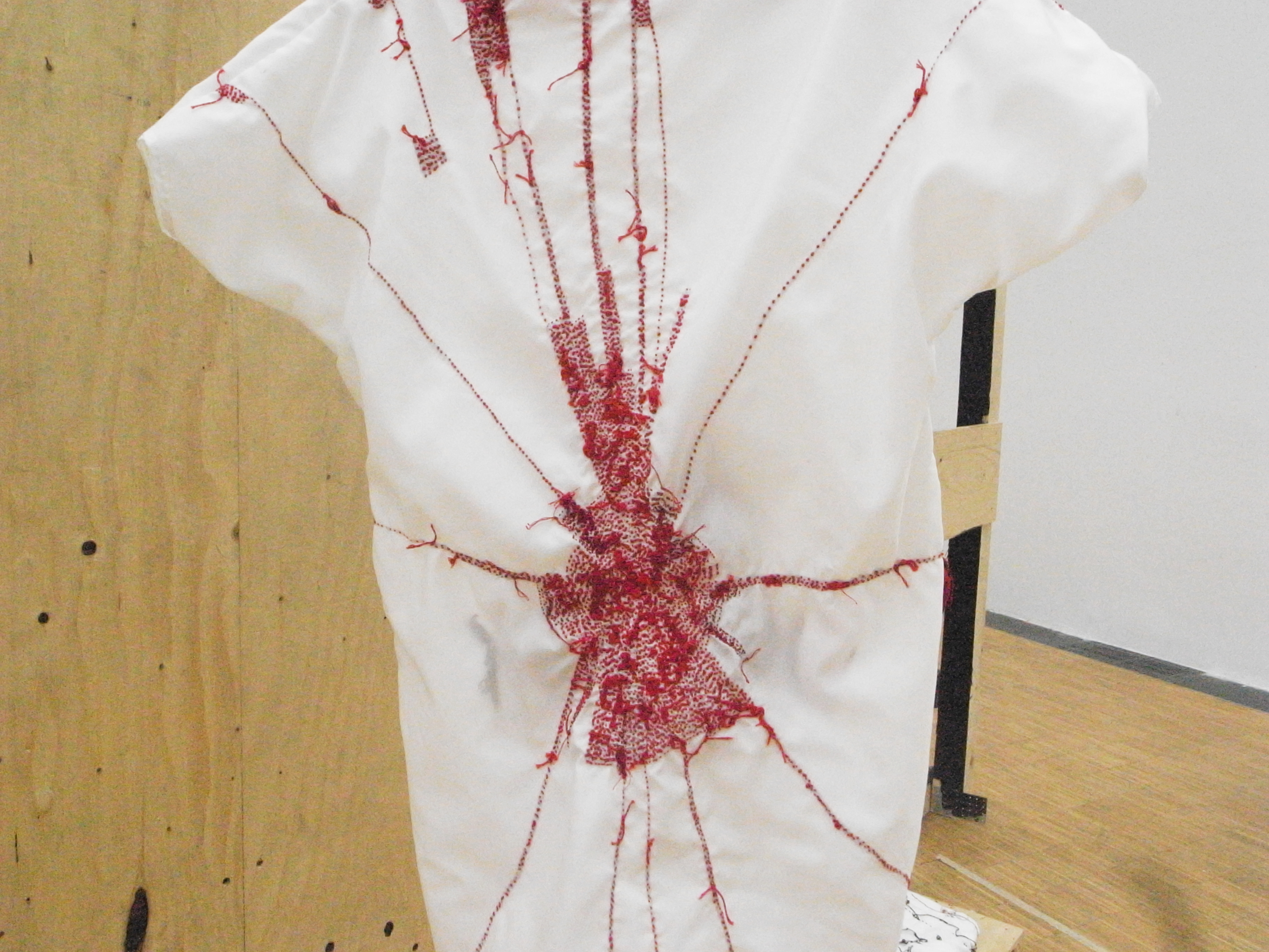 During the exhibition I invited my fiends to the installation as a performance and we embroidered our parents name on the fabric. To make the personal space, I divided the inner space of the installation from the exhibition hall with transparent fabrics.